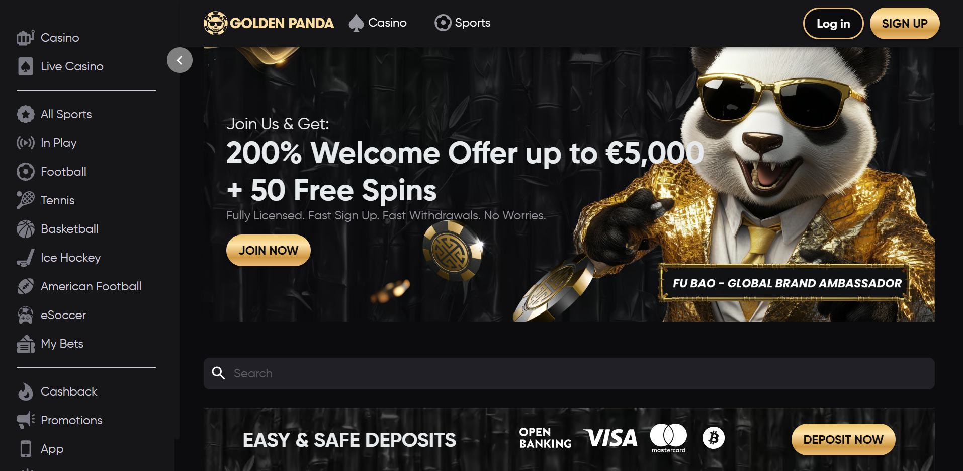 Golden PandaBig promos + slot-heavy lobby with weekly cashback and tournament-style campaigns200% up to €5,000 + 50 free spins (Zeus vs Hades – Gods of War)